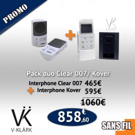Achetez dès maintenant le pack duo V-Klärk comprenant un interphones sans fil Clear 007 et un interphone sans fil Kover, et bénéficiez tout de suite d'une réduction de 19% sur l'achat de 2 interphones sans fils !!!